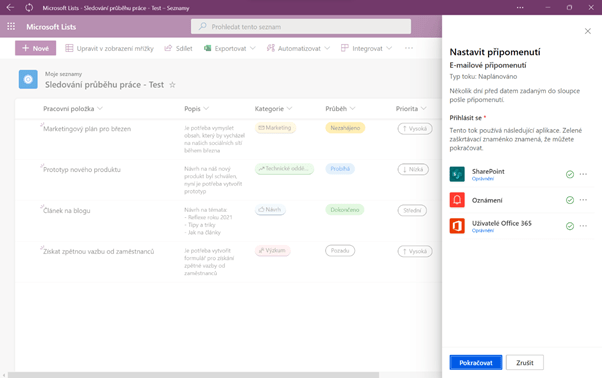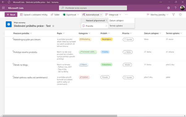 Automatizace procesů je jedna z funkcí Microsoft Lists. Dala by se rozdělit do dvou kategorií – Připomenutí a Pravidla.