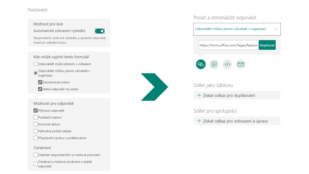 Možnosti sdílení kvízu