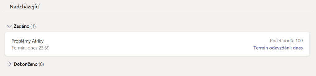 A jednak mohou jak učitelé, tak i studenti jednoduše rozkliknout kartu Zadání, kde bude úkol přímo v kategorii Zadáno.