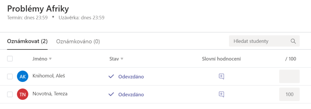 Nyní přichází ta nejdůležitější část – jak je to s oznámkováním a vracením úkolů studentům. Zde nastávají celkem dva scénáře: