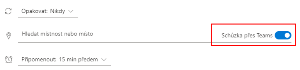 Ze všeho nejdůležitější je přepínač Schůzka přes Teams. Ujistěte se raději dvakrát, že jste jej povolili, protože v opačném případě by se nevytvořila online schůzka a Outlook by tuto událost v kalendáři považoval za fyzickou akci, třeba jako návštěvu divadla.