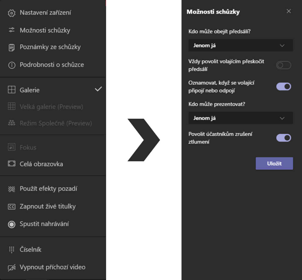 - Nepovolit účastníkům zrušení ztlumení – Zakážete všem účastníkům kromě sebe povolit si mikrofon. Jestliže jste v Možnostech schůzky nastavili jako prezentujícího pouze sebe, tuto možnost vidíte pouze vy. Na stejném místě pak naleznete i inverzní operaci, tedy Povolit účastníkům zrušení ztlumení, a lze mezi nimi kdykoli libovolně přepínat.