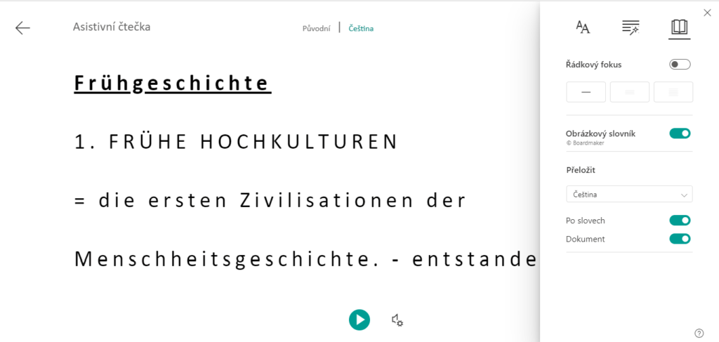 - Otevřeme dokument, který chceme přeložit. Jako příklad si zde uvedeme text z německého dějepisu