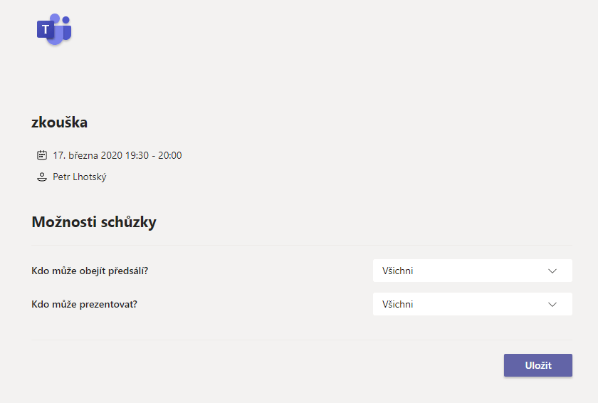 Přesněji to znamená, že tvůrce schůzky může přiřadit různá práva pro ovládání hovoru různým členům. Jde například o sdílení, zeslabení mikrofonu nebo přidávání a odebírání účastníků. Hlavní výhodou pro školy je fakt, že studenti nemají možnost dělat vyučujícím naschvály nebo rušit výklad ostatním spolužákům zapnutým mikrofonem. Začneme tlačítkem Možnosti schůzky.