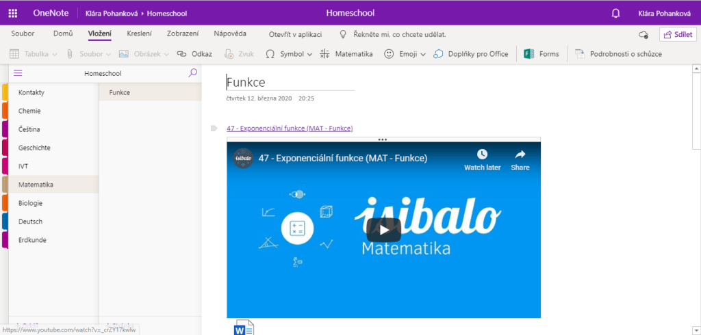 - Zkopírujte odkaz do vašeho sešitu. Video se automaticky zobrazí