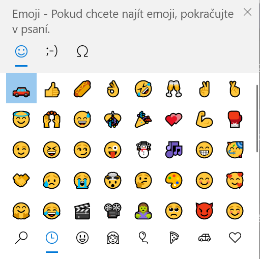 Možná se ptáte, jak se ke smajlíkům a ikonkám dostanete. Windows nabízí bohatou sadu spousty krásných ikonek. Dostaneme se k nim přes zkratku Windows + tečka. Z ikonek vybereme tu, která se k tématu kanálu hodí nejvíce. Pokud třeba máme kanály ve školním týmu dedikované jednotlivým předmětům, můžeme ke každému přidat tematický obrázek. Věřte, že si vždy vyberete.