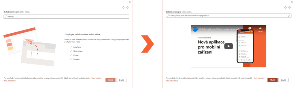 Jak jste si mohli v nabídce pod tlačítkem Video všimnout, je možné vkládat i online videa prostřednictvím odkazů. Ty pak nově snadno přehrajeme přímo v PowerPointu. Důležité je nicméně zdůraznit, že při promítání prezentace bude potřeba internet.