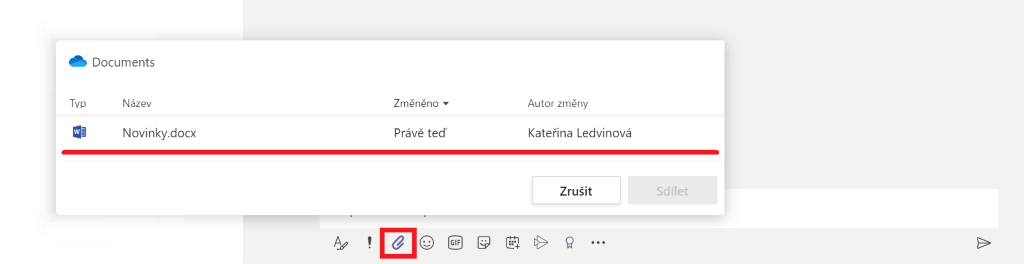 Bylo zjednodušeno také sdílení pomocí platformy Teams. Když někomu budeme chtít v chatu poslat soubor, přímo zde se otevře nabídka souborů na našem OneDrive a navíc i možnost pro nastavení oprávnění, tedy zda může člověk na druhé straně soubor upravovat apod. Jde o stejné nastavení, jako když někomu sdílíme odkaz na soubor. Ono se ve skutečnosti o odkaz jedná i zde.