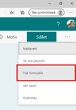 Online formuláře jsou dnes, při stálém částečném distančním vzdělávání, žádanou funkcí. Ale až se zase vrátíme do lavic a za katedru, nebudeme-li zrovna v počítačové učebně, nebudeme moci tyto formuláře využít? Ale kdepak! Nově je možné si je vytisknout v optimalizované podobě, takže z formulářů vytvořených přes online službu Microsoft Forms se mohou stát stále i ty "offline" písemky na papíře. Tuto možnost najdete po kliknutí v pravém horním rohu na tři tečky pod možností Tisk formuláře.