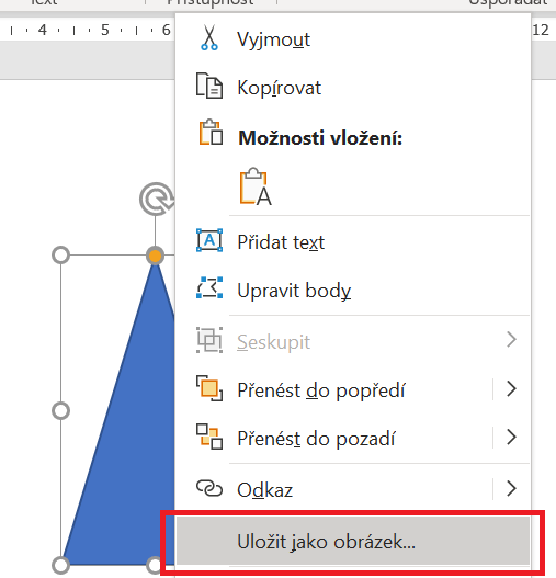 Pokud máme v dokumentu obrázek nebo GIF, je možné uložit jej do jiné složky jako samostatný obrázek a později jinde použít. Nyní je možné podobným způsobem uložit i obrazec nebo některou z ikon, kterou Office nabízí prostřednictvím své fotobanky. Stačí na ikonu nebo obrazec kliknout pravým tlačítkem myši a vybrat Uložit jako obrázek. Následuje dialog pro pojmenování.