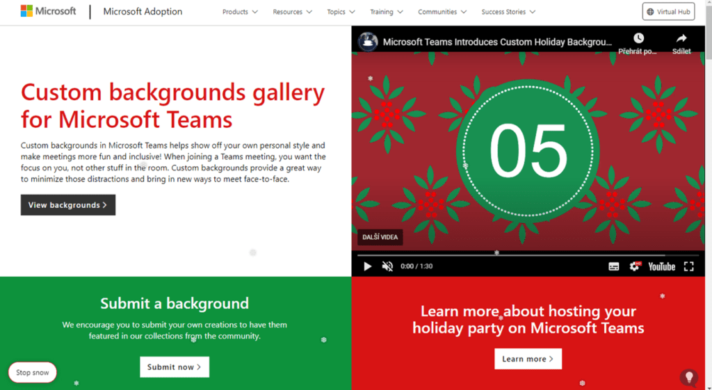 Již několik měsíců je možné přizpůsobit si při online hovoru v aplikaci Teams pozadí nacházející se za námi. Microsoft nyní vytvořil celou galerii obrázků hlavně, ale nejen s Vánoční tematikou. Najdete zde spoustu zajímavých pozadí ve vysokém rozlišení, které si můžete stáhnout k sobě a ihned nahrát do Teams během schůzky. Tuto galerii obrázků najdete na webu adoption.microsoft.com. A pozor, je zde možnost přispět i vámi vytvořeným pozadím. Staňte se součástí úžasné komunity!