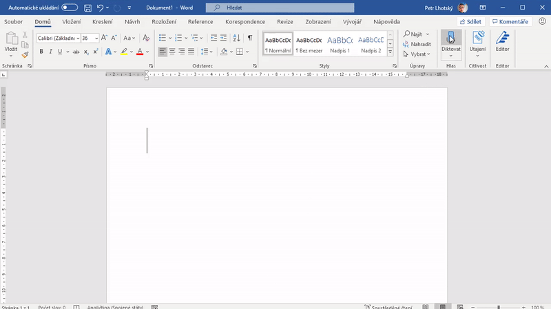 Nástroj Diktovat nabízejí aplikace Office již několik měsíců. Teď ale byl vylepšen a obohacen o další funkce. Už to není jen o diktování textu v mnoha světových jazycích, ale o používání hlasu k celkovému ovládání Office, minimálně k formátování textu. V angličtině lze používat slova jako například "new line" pro odřádkování, "undo" jako vzít akci zpět, "delete last sentence" pro odstranění poslední věty, "bold"/"italic"/"underline" pro ztučnění/kurzívu/podtržení, "align center" pro zarovnání odstavce doprostřed, "start list" pro použití seznamu nebo třeba "add comment" pro přidání komentáře. Není problém tedy diktovat nejen text, ale i to, jak se má Word chovat. Mezi další plně podporované jazyky patří francouzština, italština, němčina, čínština a španělština. Procvičíte si cizí jazyk a ještě při tom vytvoříte obsah dokumentu či prezentace.