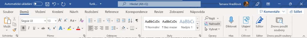 1. Najdeme funkci Nahradit na kartě Domů v sekci Úpravy (na pravé straně).