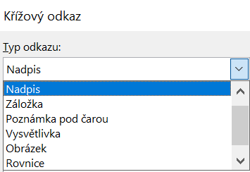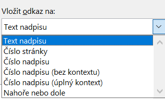 6. V poli Pro nadpis klikneme na konkrétní položku, na kterou chceme odkazovat, třeba na Vložit křížový odkaz.