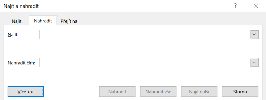 Když zjistíme, že jistý termín není správně, namísto projíždění celého dokumentu řádek po řádku a hledání s nahrazováním jednotlivých slov je tu funkce Najít a nahradit. Umožňuje nám najít všechny zmínky slov (a nejen to) a efektivně je nahradit jinými.