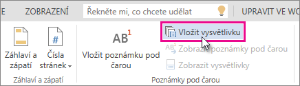 Vysvětlivky jsou užitečné pro vkládání doplňujících informací nebo komentářů do dokumentu. Pro jejich přidání stačí na kartě Vložit kliknout na Vložit vysvětlivku a následně zadat její text.
