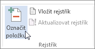 Vyberte text, který chcete použít jako položku rejstříku. Poté na kartě Odkazy klikněte ve skupině Rejstřík na Označit položku.