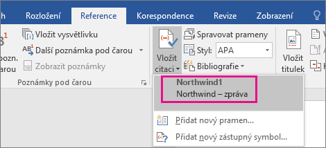 V seznamu citací, který se objeví, vyberte citaci, kterou chcete použít.