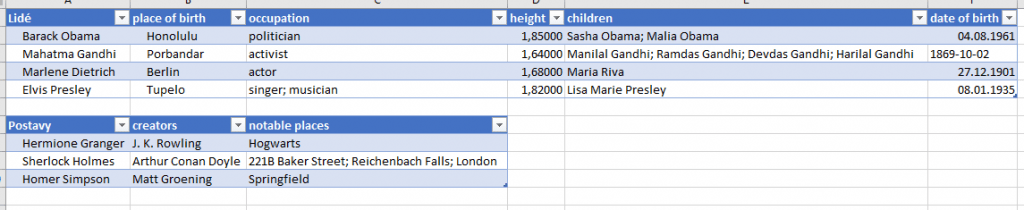 Datový typ Lidé umožňuje vyhledávat informace o historických, žijících i fiktivních postavách. Můžeme se dozvědět o místě a datu narození těchto osob, počtu jejich dětí a sourozenců a získáme i přehled o tom, kolik knih napsali nebo ve kterých filmech se za svého života objevili.