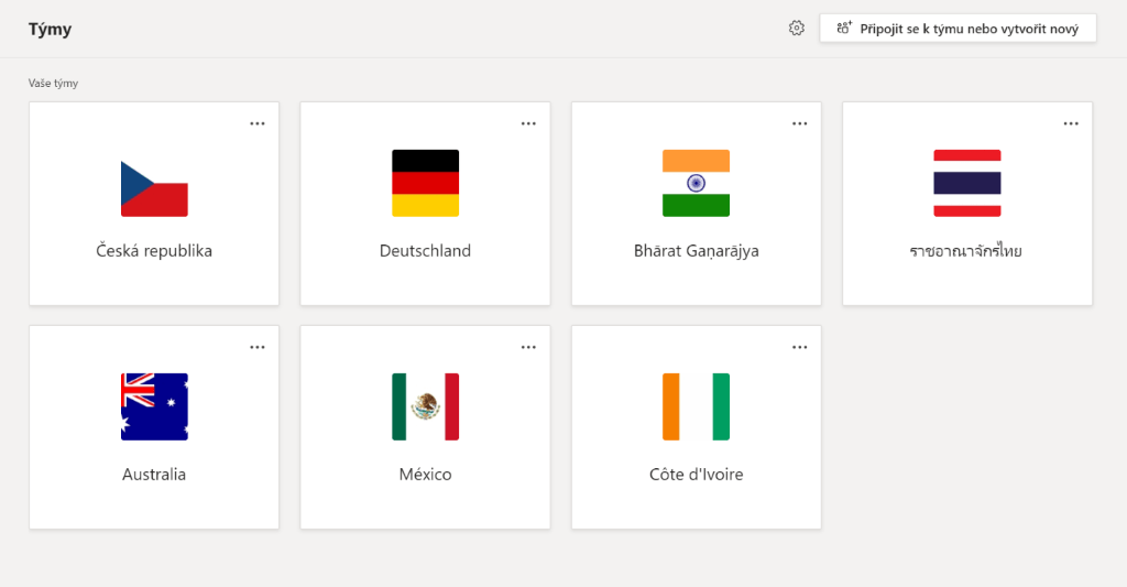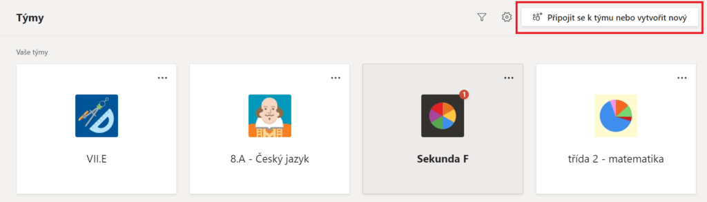 Žáci si v průběhu celé hodiny volají ve skupinkách v soukromých kanálech. První úkol mají v soukromém kanálu. Jelikož se jedná o např. čtyřčlennou skupinku, která musí vyřešit jeden úkol, může třeba jeden z nich sdílet obrazovku s úkolem ostatním a společně bádat nad řešením. Různé úkoly si vyžadují různé přístupy. Co je ale důležité, je to, že jakmile žáci vyluští kód, všichni musí použít kód, aby se dostali do dalšího týmu jako celá skupinka. Jak to udělají? V Teams půjdou do seznamu týmů, kterých jsou součástí. V pravém horním rohu (v dlaždicovém rozvržení) se pak nachází tlačítko Připojit se k týmu nebo vytvořit nový.