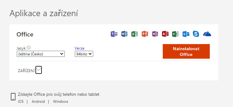 - Nainstalujete si přednastavenou verzi Office, správce danou verzi včetně jazykové sady vybral už za vás.