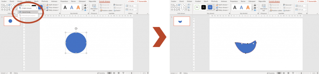 Obrazec můžete také jednoduše upravit. Z jednoho tvaru je možné vytvořit nekonečné množství jiných a je jen na vás, který vám bude vyhovovat. Díky této funkci máte vámi vysněný obrazec na dosah ruky. Funkci najdete opět na kartě Formát obrazce pod názvem Upravit body, pak už je stačí jen chytit a roztáhnout do libovolného směru. Takhle je to jednoduché.
