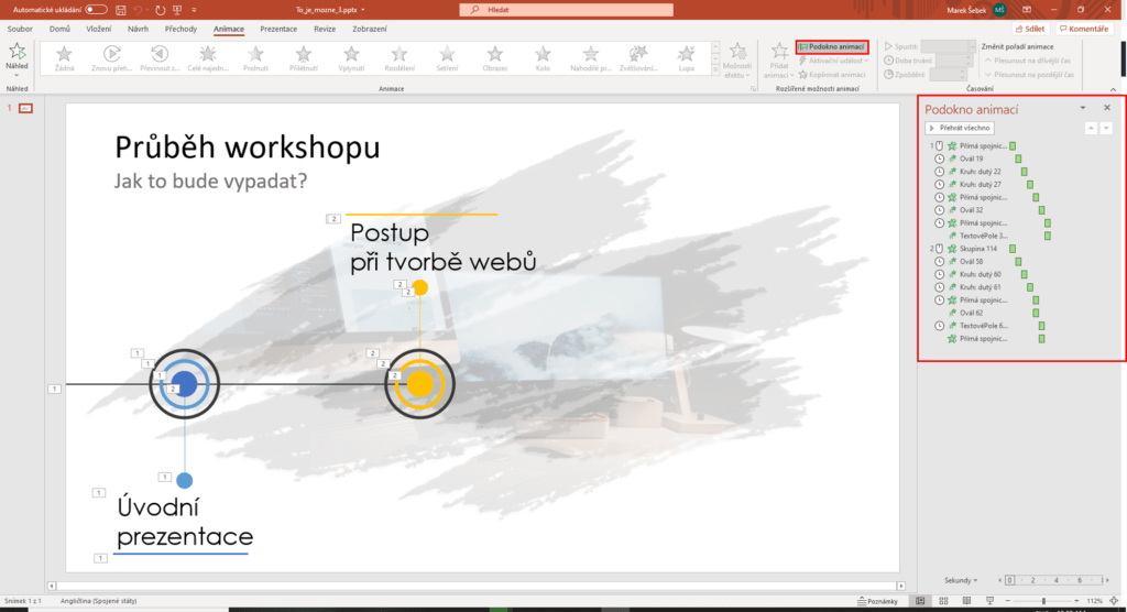 Animace jsou výborným doplňkem prezentace, tedy slideshow, pokud jsou správně použity. V PowerPointu s nimi lze podrobně pracovat a upravovat je. Ukažme si několik možností, o kterých třeba nevíte, že existují. Pokud se chcete naučit animovat 3D modely, podívejte se na článek To je opravdu možné v PowerPointu – 2. díl. A my se zde už pustíme do pokročilejších věcí. Nejdříve se pojďme podívat na podrobnější informace toho, jaké animace jsou na tento snímek aplikovány. To můžeme zjistit na kartě Animace, kde ve skupině Rozšířené možnosti animací klikneme na Podokno animací a rozbalíme stejnojmenný panel.