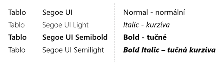- Bezpatkové písmo, patkové pouze na nadpisy