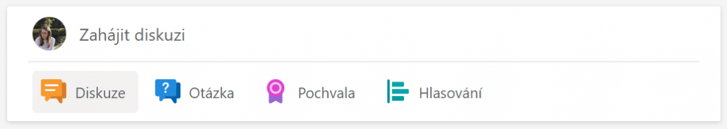 Aplikace nabízí mnoho možností, jakými jde publikovat příspěvek. Je zde Diskuze, Otázka, Ocenění nebo Hlasování. Vše obohacují emotikony, různé možnosti formátování, přidání odkazů, nebo dokonce GIFu. Fungují zde dokonce hashtagy, díky kterým lze selektovat příspěvky s určitou tématikou.
