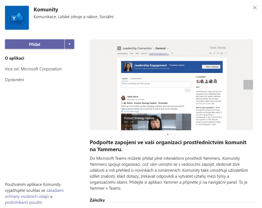 Jak si přidat Yammer do Teams