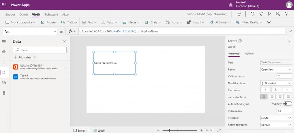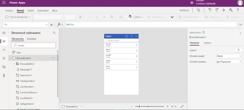 - Pomocí datového konektoru OneDrive pro firmy soubor připojíte do vámi zvolené Power Apps. Excelová tabulka se vám přepíše do tabulky strukturované.