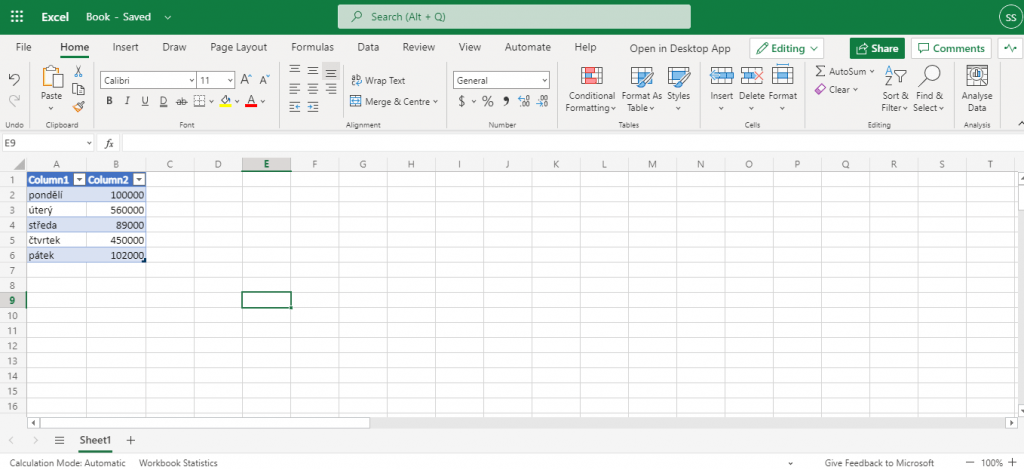 - Vytvoříte si excelový soubor, ve kterém budete mít data vložená do tabulky.