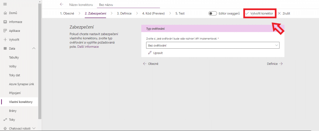 Vpravo nahoře klikněte na ,,Vytvořit konektor."