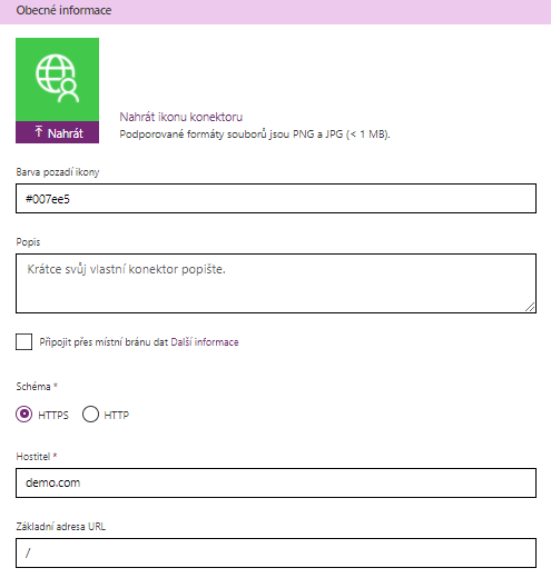 - Do políčka ,,Hostitel" vepište URL adresu vašeho rozhraní API, které chcete ke konektoru připojit.