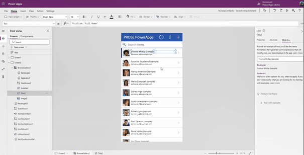Power Apps servírují další možnosti zužitkování GPT-3, jako je třeba takzvané Programming by example - nebo Programování dle příkladu. Přemýšlíte, co tento pojem schovává? Řekněme, že si vezmete aplikaci, u které chcete zobrazit položky v seznamu jako nadpis ve formátu jméno, první písmeno z příjmení a tečka. Do Power Apps tedy uvedete příklad - 'Jan S.' - tím přiblížíte umělé inteligenci, čeho se snažíte u všech položek dosáhnout. Ta poté zpracuje požadavek, vytvoří z něj kód, jehož zásluhou se zbytek listu zobrazí v požadovaném formátu.