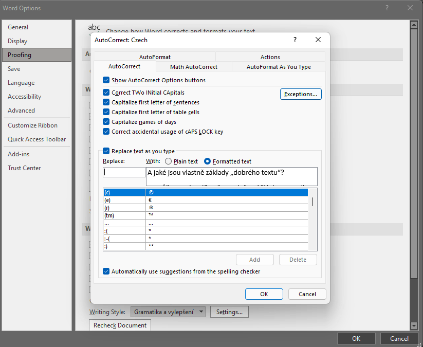 Taktéž dbejte na pravopisnou správnost. Ne každé oko je vytrénované na zbystření překlepu či chybky na první dobrou, nicméně i pokud zrovna nemáte po boku jazykového korektora, vaše produkty Office 365 poslouží stejně. Vložte svůj text do aplikace Microsoft Word a nechte jej vás upozornit, kde jste se dopustili gramatických přešlapů. Autokorekci můžete zapnout i vypnout pomocí Soubor > Možnosti > Kontrola pravopisu.