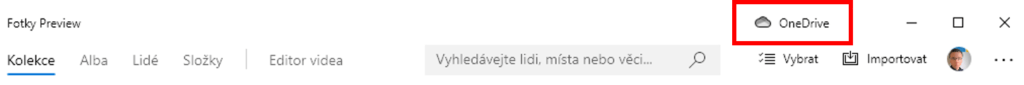 Nyní již můžete přejít do aplikace Fotky na počítači, která je ve Windows 10 předinstalovaná, a tak ji naleznete v nabídce Start. Všimněte si tlačítka OneDrive v pravém horním rohu. Právě pomocí něj zajistíte, aby tato aplikace načítala fotky také z vašeho cloudového úložiště. Proto na něj klikněte a přihlaste se pod stejným Účtem Microsoft jako v mobilní aplikaci. A to je všechno.