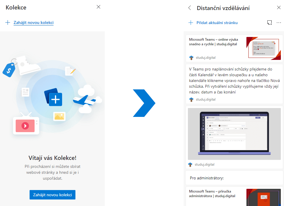 Jistě to všichni znáte – připravujete velmi rozsáhlou práci do školy a jste ve fázi, kdy sbíráte použitelné materiály. Pravděpodobně procházíte výsledky vyhledávání a zajímavé informace si kopírujete do dokumentu ve Wordu, případně jste si vytvořili složku v oblíbených položkách. Kolekce ovšem přináší zcela nový způsob ukládání odkazů, obrázků, textů, stránek či poznámek k nim, které si poté můžete všechny najednou otevřít a vrátit se k nim přímo v prohlížeči nebo exportovat do Wordu či do Excelu.