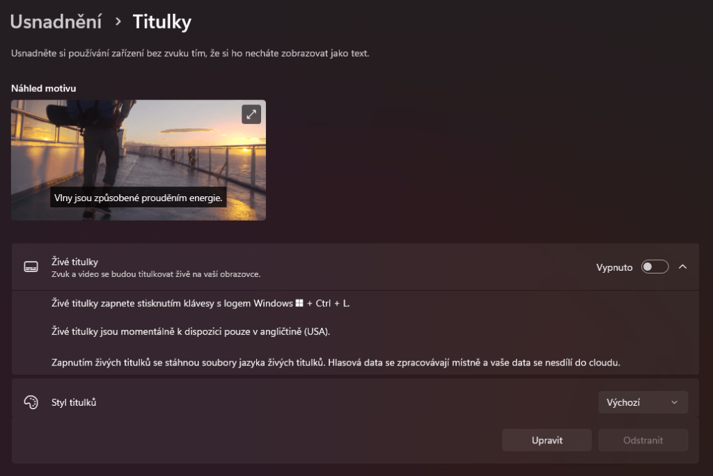 Ať už máte nějaký typ sluchového postižení, či jen koukáte na video v hlučném prostředí, funkce Titulky Vám může pomoci. Můžete díky ní totiž číst psanou verzi videa. Zobrazení titulků ve Windows a ve Windows aplikacích se může přizpůsobit vybráním Start > Nastavení > Přístupnost > Titulky.