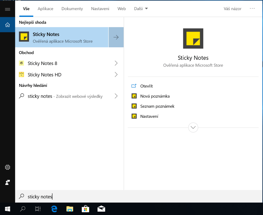 Nejjednodušší cestou je vyhledat aplikaci Rychlé poznámky (anglicky Sticky Notes) přímo skrze vyhledávání na hlavním panelu. Poznáte ji podle žluté ikony: