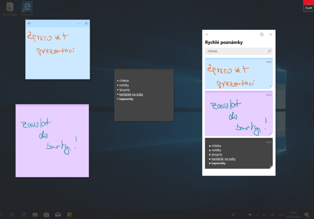 Velkou výhodou těchto poznámek je, že i po zavření samotného pracovního prostředí poznámky zůstanou na ploše – pokud je zde zavřete, můžete se k nim samozřejmě dostat zpátky pomocí aplikace.