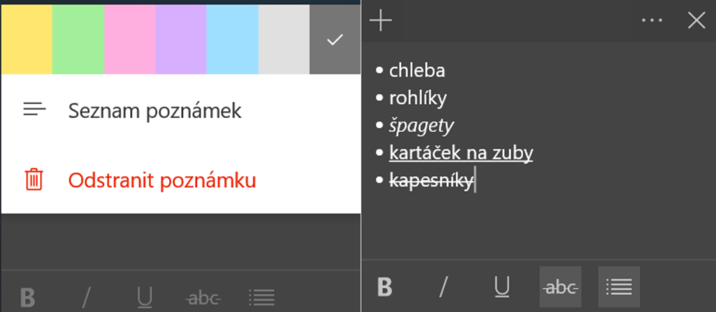 Poznámky můžete také libovolně formátovat, jako i v běžných textových procesorech, případně jim měnit barvy: