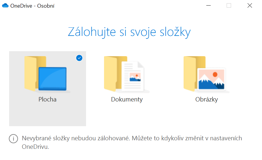 Zde budete samozřejmě moci nastavení kdykoliv také změnit. Vyberte Plocha pro její synchronizaci s OneDrive. Tímto způsobem budou všechny soubory, které máte v zařízení na ploše, synchronizovány s vaším OneDrive. A podobně to lze aplikovat i na složky Dokumenty a Obrázky. Zajistíte si tak synchronizaci i těchto složek a už se nebudete muset omezovat jen na složku OneDrive v Průzkumníkovi souborů. Hodí se mít všechny svoje soubory na cloudovém úložišti, jde o nejbezpečnější variantu.