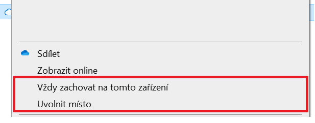 Stav si můžete u každého souboru kdykoli nastavit. Klikněte pravým tlačítkem myši na současnou ikonku souboru a vyberte jednu z možností. Soubor, který je právě pouze online, zpřístupníte i offline díky možnosti Vždy zachovat na tomto zařízení. Pokud chcete naopak uvolnit místo v zařízení a mít soubor přístupný pouze při připojení k internetu, vyberte Uvolnit místo.