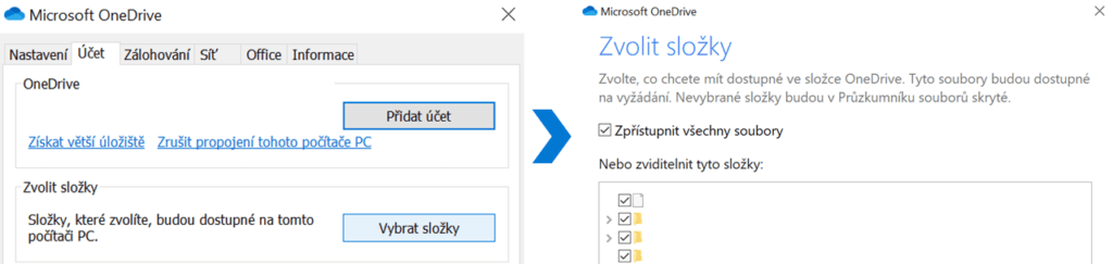 Vaše soubory se nyní budou zobrazovat ve složce OneDrive přímo v Průzkumníkovi souborů. Pokud si přihlásíte do počítače více účtů, složek OneDrive se vám zobrazí více a rozliší se přívlastky, například „osobní“. Soubory se nyní budou synchronizovat s Vaším počítačem. V případě, že byste chtěli udělat změny v synchronizaci složek nebo nastavení OneDrive, klikněte znovu na ikonu mráčku, tu, která představuje účet, u něhož chcete změny provést, vyberte Více, možnost Nastavení a na záložce Účet, kterou už známe, naleznete také tlačítko Vybrat složky. Zde si můžete projít všechny složky, soubory a podrobně nastavit jejich dostupnost. Při nastavování dejte pozor na možnost Zpřístupnit všechny soubory, níže si totiž můžete vybrat jenom některé.