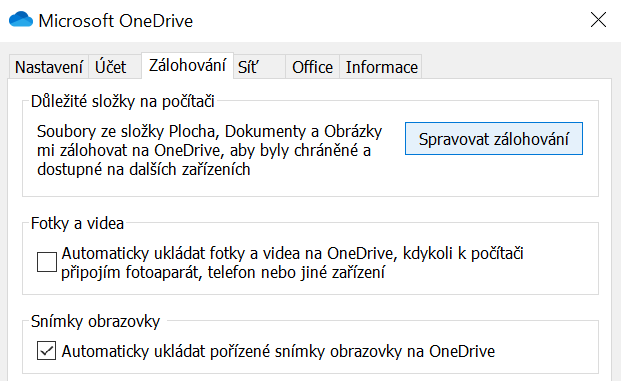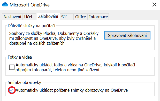 Aplikaci OneDrive můžete využít také k automatickému ukládání snímků obrazovky. Jde to nastavit jenom pár kliknutími, přejděte opět do Nastavení a tentokrát do záložky Zálohování. V sekci Snímky obrazovky zaškrtněte Automaticky ukládat pořízené snímky obrazovky na OneDrive. Screenshoty se vám nyní budou ukládat do speciální složky na OneDrive v zařízení a zároveň se nahrají do online úložiště kdykoli, když stisknete klávesu Print Screen (PrtSc). A to je fakt velké urychlení práce, doporučuji!