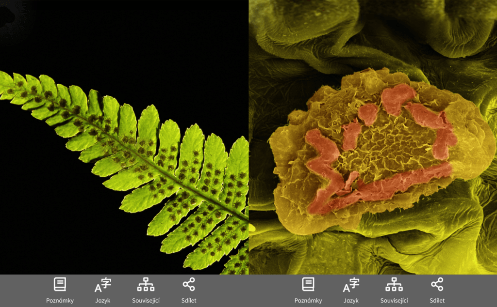 V aplikaci Corinth nenajdeme pouze 3D modely, se kterými otáčíme a zobrazujeme si jednotlivé části, ale jsou zde i takzvané Zoom modely. To může být například list, u kterého se zvlášť nezobrazují jednotlivé části, ale s pomocí myši anebo posuvníku si list přibližujeme až k pohledu pod mikroskopem. Samotný přechod do detailu je zpracovaný hezky, plynule a interaktivně.