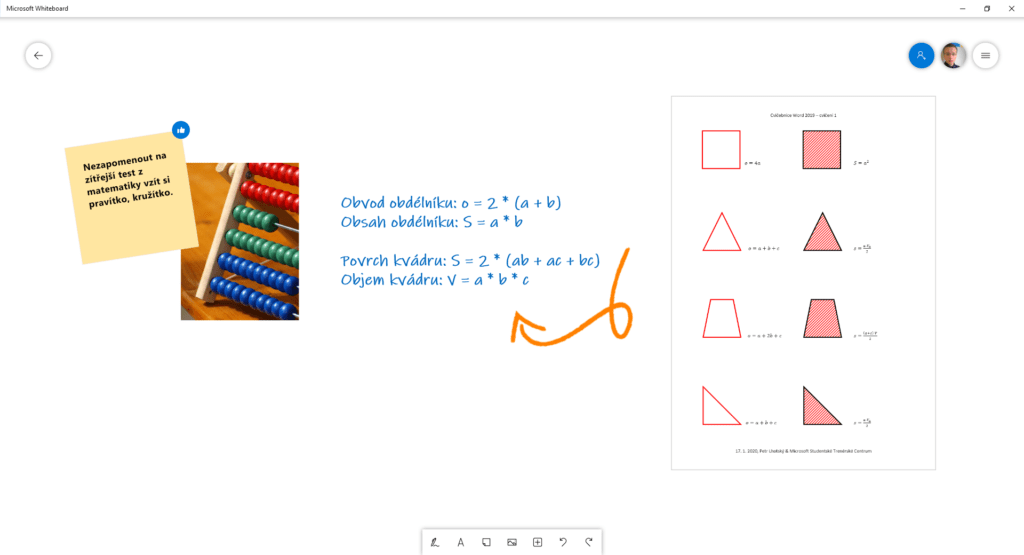 Microsoft Whiteboard je skvělý pomocník pro uspořádání, vyvíjení a rozvíjení vašich nápadů. Je rozhodně vhodný pro využívaní ve školách při výuce, kde může nahradit klasické tabule, zatraktivnit a zefektivnit výuku.